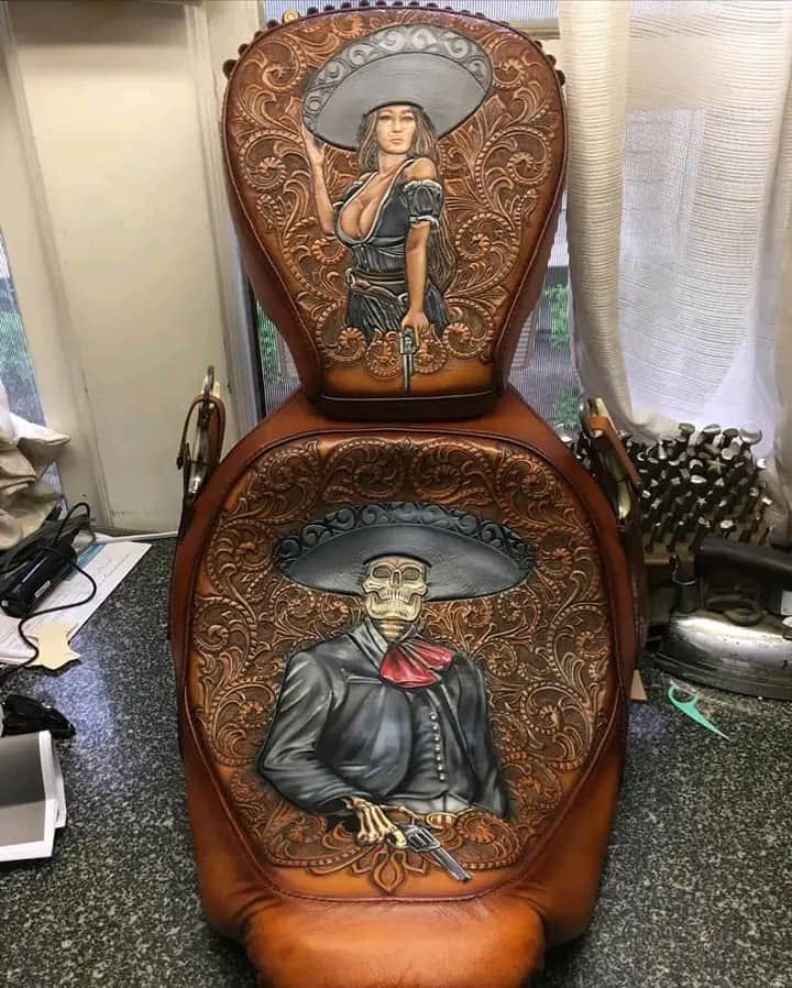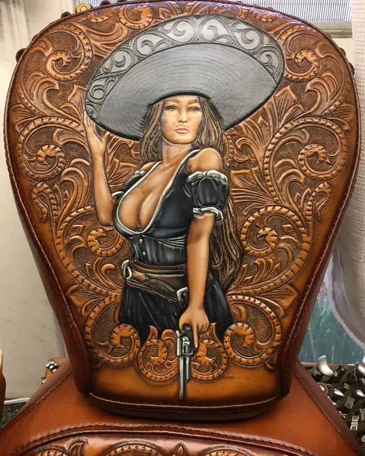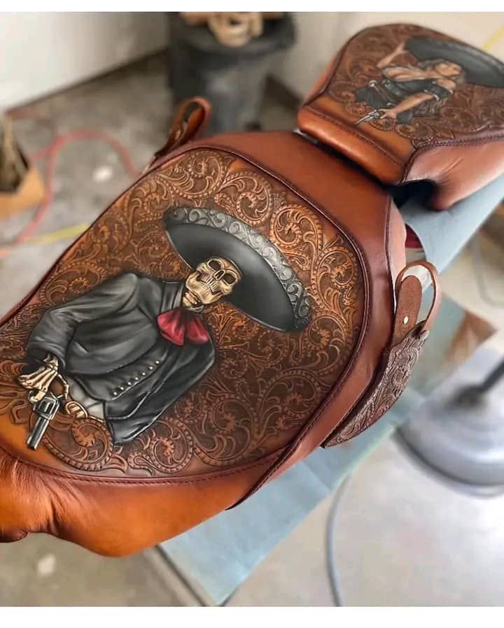 Custom Tooled Leather 2-Up Motorcycle Seat – Bandida & Catrín Edition