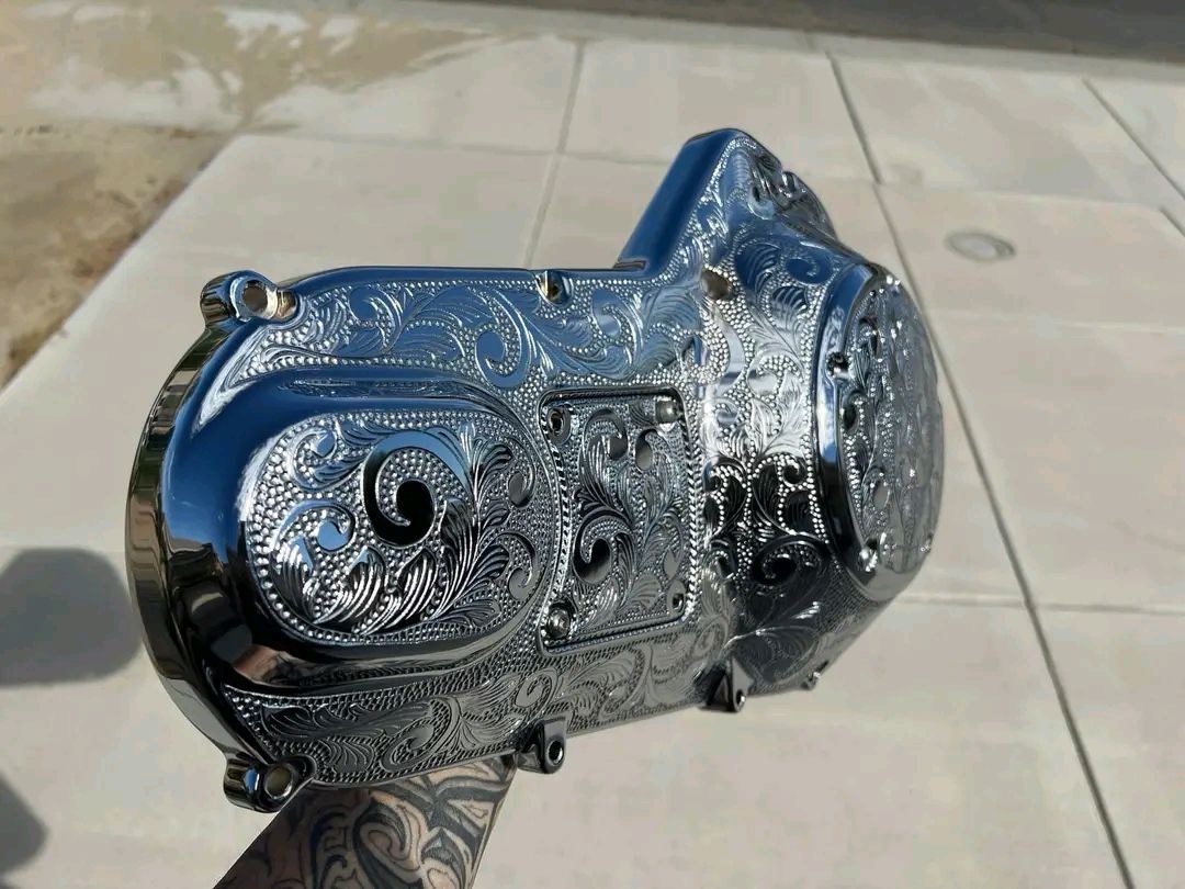 Engraved Harley Primary Cover – Custom Hand-Engraved Perfection