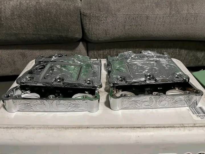 Designed for style and durability, these covers feature intricate hand-engraved scrollwork that blends elegance with attitude. Made from premium-grade aluminum and polished to a flawless chrome finish, they’re built to endure heat and pressure while turning heads at every stoplight.