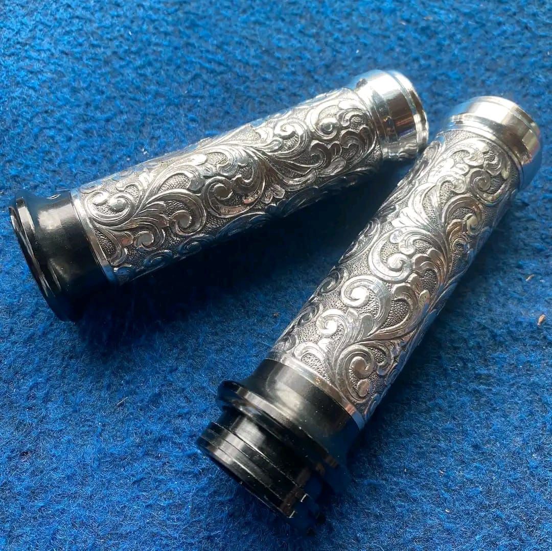 Engraved Silver Motorcycle Grips – Ride with Royalty